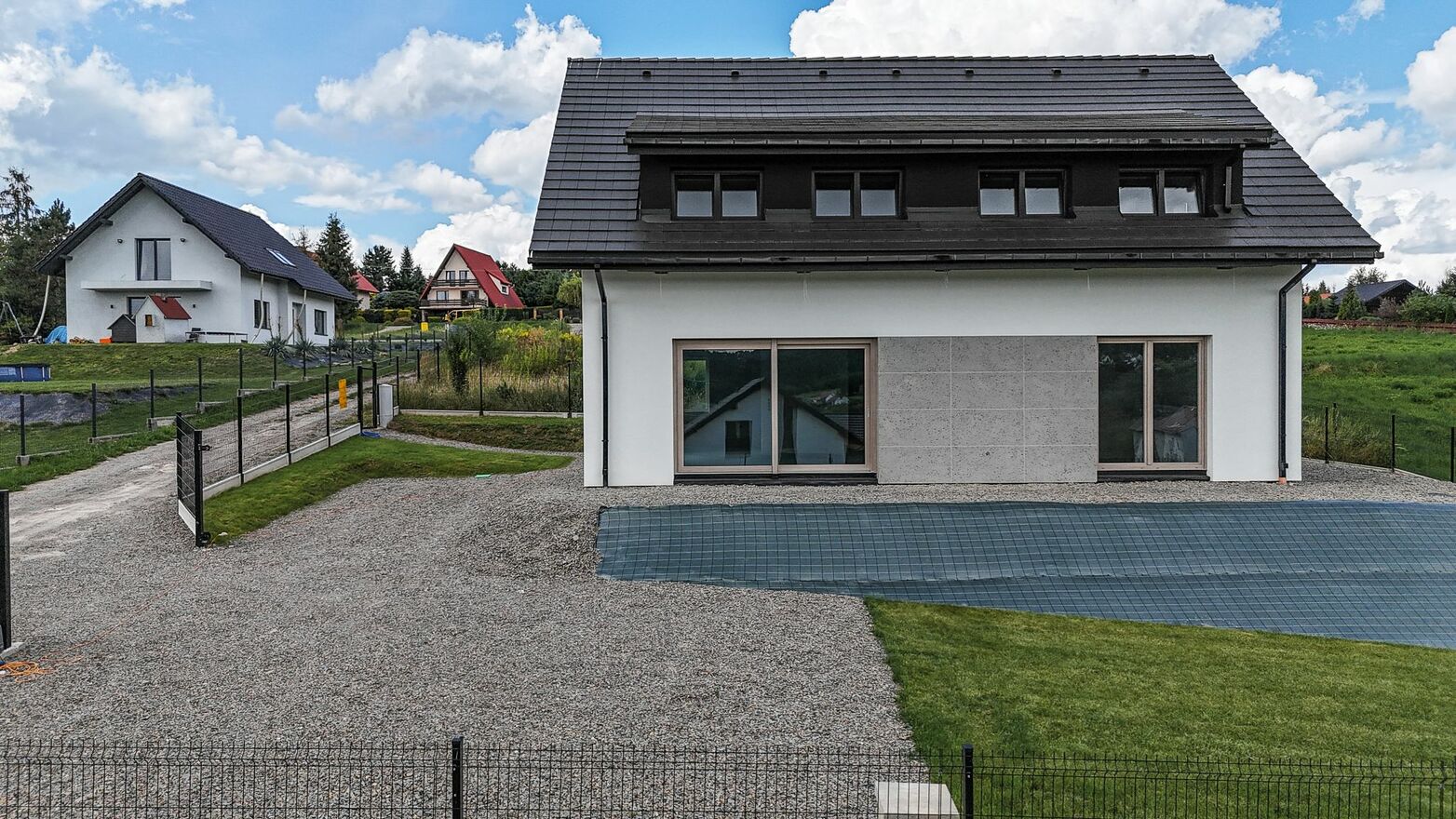 - Dach pokryty nowoczesną, trwałą dachówką płaską